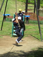 公園内のアスレチックは、1年生の背ではなかなか届かず、難しそうなものもありましたが、子どもたちは果敢に挑