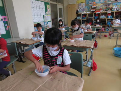 2020年7月30日 17時28分図工の時間に「とろとろえのぐでかく」をしました。