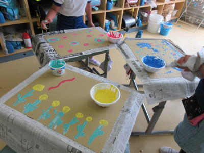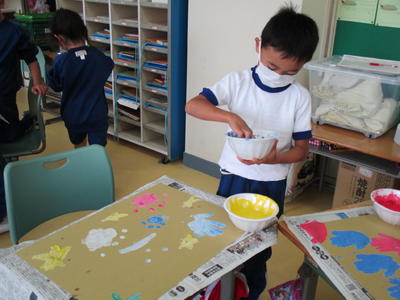 「きもちいい!」「楽しい!」と歓声を上げながら、手全体が絵の具でびっしりになりました。