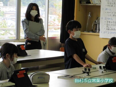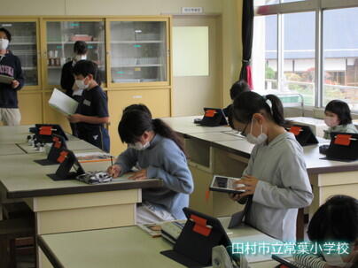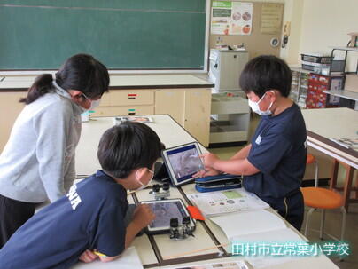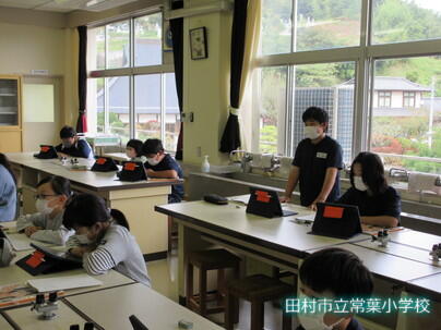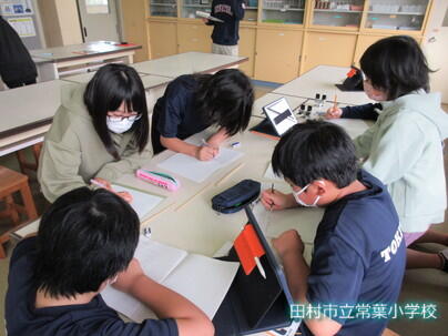 2022年10月14日 16時30分5年1組理科の授業を参観しました。本時は「実験の結果から流れる水のはたらきについてまとめることができる」ことをねらいとした授業でした。前時に実験をして、その様子をタブレットで撮影しており、子どもたちは映像を見たり、印を付けた割り箸で砂の浸食具合を確かめたりしながら、流れる水は上流で土を削り、それを流し、下流で積もらせていることを理解しました。そして、3つのはたらき「浸食作用、運搬作用、堆積作用」についてまとめました。
