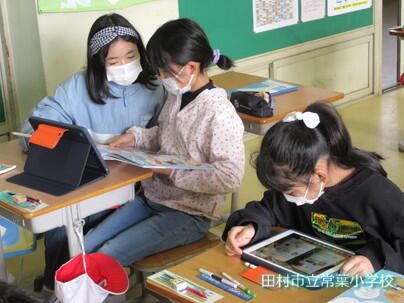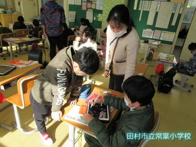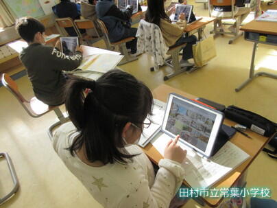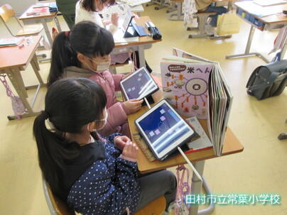 2022年12月8日 11時33分3年2組の国語科の授業を参観しました。本時は、「文章を書く目的を意識して情報を収集し、集めた材料を比較したり分類したりして、思考ツールに整理することができる。」ことをねらいとした授業でした。子どもたちは、「米、麦、とうもろこし、牛乳、魚、いも」などについてどのように変化するかを、本やネット検索を使って友だちと一緒に調べたり、教え合ったりしながらロイロノートの思考ツールにまとめました。最後に数名の児童がそれぞれ調べたことを発表しました。