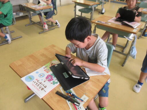 2024年7月2日 10時13分1年生は生活科でアサガオを育てています。