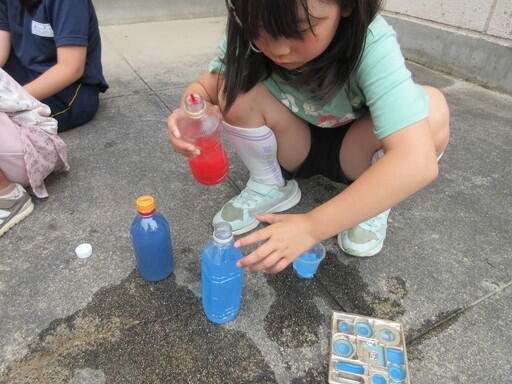 2024年7月19日 11時40分2年生がきれいな「色水づくり」をしていました。