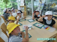 6月9日(木)2年生は1年生と一緒にムシテックワールドへ見学学習に行ってきました。始め、プラスチック板でキーホルダーを作りました。次に管内の展示物を見て回りました。体験型の実験や物作りがたくさんあるので、家庭での行ってみると楽しいと思います。