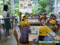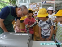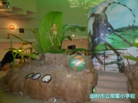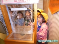 1年生はプラスチック板でアクセサリー作りをしました。小さなプラスチックのコップをオーブントースターで熱するとどうなるでしょうか。1年生はほとんどの子どもが「小さなコップになる。」と思っていたところ、平らな丸い円盤の形になったので、ビックリしていました。展示物を巡ると、どのコーナーも虫の世界に入り込んだようで目を丸くしていました。