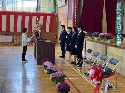 代表に校長先生から教科書が授与されました。しっかり勉強してね!