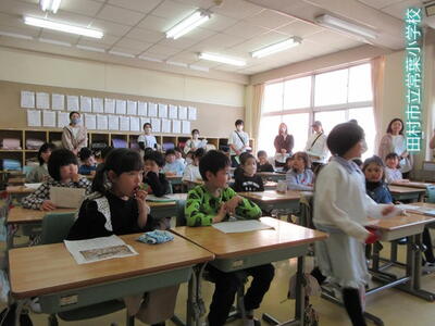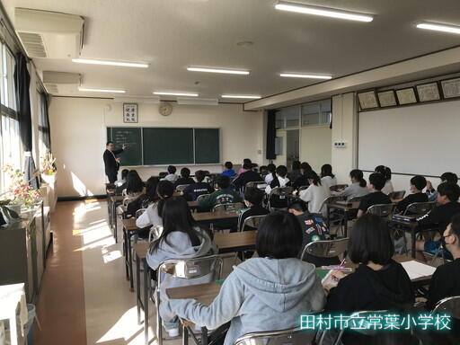 中には、うなずきながら、または、「はい」と返事をする子もいました。身に染みて話を聞いている児童の姿。