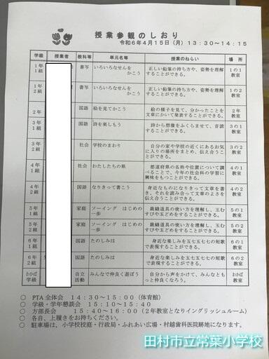 4月15日、今年度最初の授業参観を行いました。1年生は入学してから初めての5校時でしたが、おうち方の参観が励みになり、張り切って書写の授業に臨んでいました。どの児童も、新年度 新たな気持ちでスタートを切っています。おうちの方には、子どもたちのやる気にあふれた様子をご覧いただけたのではないでしょうか。