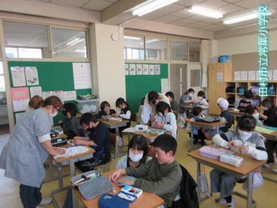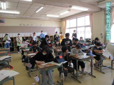 4月15日1校時目に6年生が、常葉中学校へいきました。
