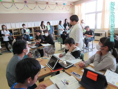 6年生を中心に、縦割り班で答えをまとめます。ここでも6年生の力が存分に発揮されました。
