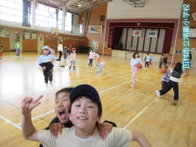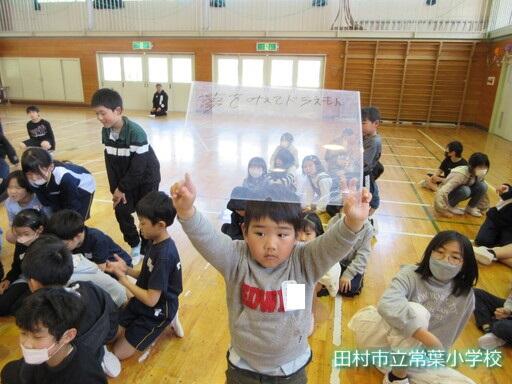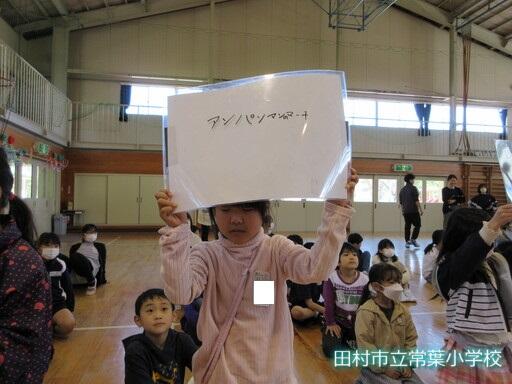 一つ目のゲームは「イントロクイズ」。少しざわざわしていた体育館も、音楽が鳴り始めると、全校生が「耳をすまし」音楽に「耳を傾け」ました。200人以上の児童が、全員同じ方向にまとまり動く瞬間の「雰囲気」。規模の大きい学校ならではですね。