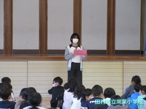 「常葉小学校は今年で創立151年です。常葉小学校の伝統は「あいさつ」がしっかりできることです。」