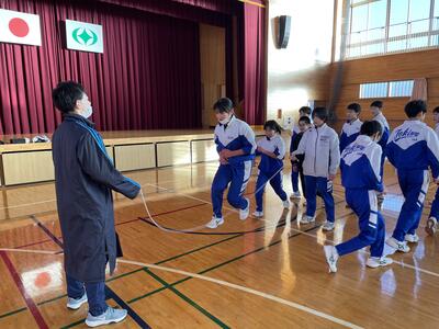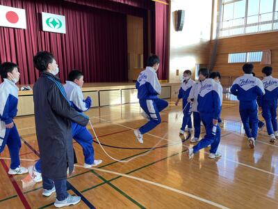 2024年1月26日 10時15分今朝は、特設陸上部が長縄の8の字跳びに挑戦していました。