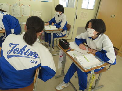 自分の考えを友達と発表し合って、考えが正しいかどうか確かめています。