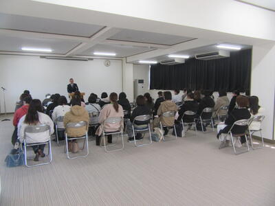 1月26日(金)、本校多目的室で「新入生保護者説明会」を行い、多くの保護者の皆様にご参加いただきました。