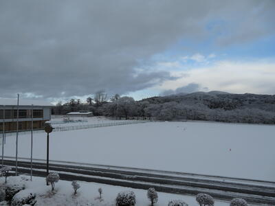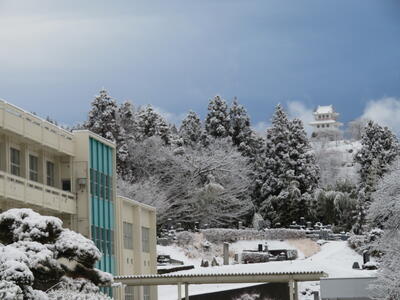 学校から見える常葉城にも雪が積もり、なんだか素敵に見えます。