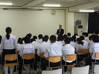 2年生と3年生及び保護者を対象とした第1回進路学習会を実施しました。高等学校の先生方から各高校ごとの特色や力を入れている事についての説明を聞きました。生徒達は、真剣に説明を聞き、3年生においては、関心のある高校について積極的に質問をしていたのが、すばらしかったです。進路目標をしっかりと定めて、今まで以上に学習に真剣に取り組んでほしいです。