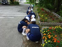 生徒達は、校舎周辺、文化の館、常葉保育所、児童生活センター、ときわ荘、デイサービスセンターの班に分かれて、窓ガラス拭きや落ち葉掃き、除草などのボランティア活動を行いました。きれいに清掃ができて各施設の方々に喜んでいただきました。